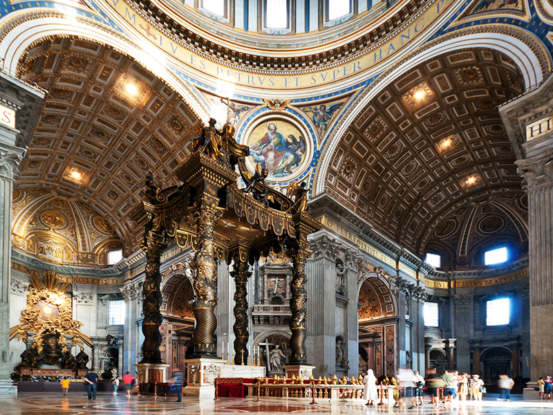 La obra cumbre que el genio de Buonarroti proporcionará a Roma como cabeza de la catolicidad es la definitiva construcción de la basílica de San Pedro, que ni Bramante, Rafael, Peruzzi, Giuliano de Sangallo ni su sobrino Antonio de Sangallo el Joven habían podido levantar desde la primera piedra bendecida por Julio II en 1506. Cuando falleció el último Sangallo en 1546, el Papa puso en manos de Miguel Ángel la conclusión de tan diferida espera