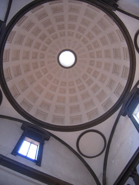 En el diseño vertical cambió la arquitectura del Quattrocento y colocó ventanas ciegas sobre las puertas; las ventanas junto a la cúpula las hizo en forma de trapecio para conseguir una óptica de ascensión más grande